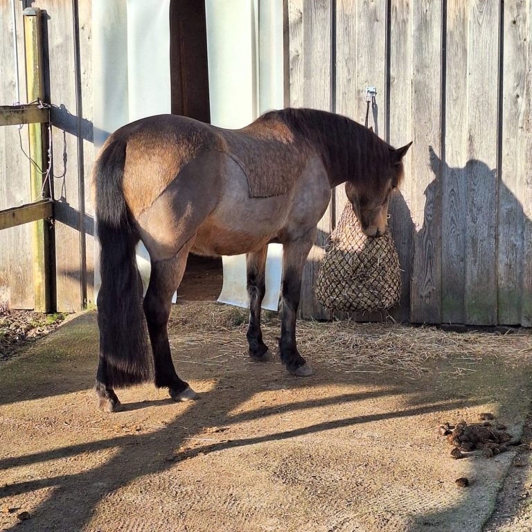 - 3-mal täglich Fütterung mit Heu oder Heulage